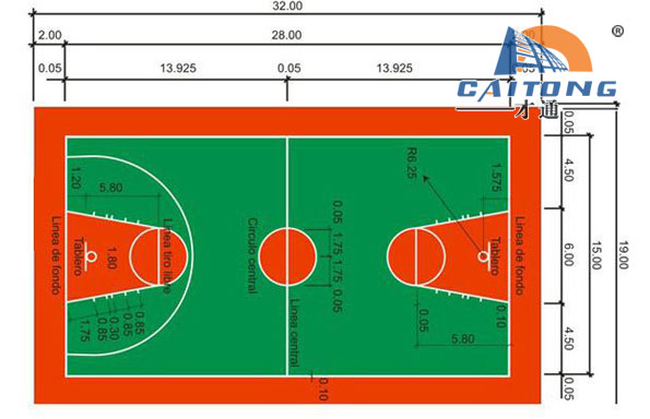 六、所有新建籃球場(chǎng)的尺寸,要與籃聯(lián)的主要正式比賽所規(guī)定的要求一致:長28米,寬15米。