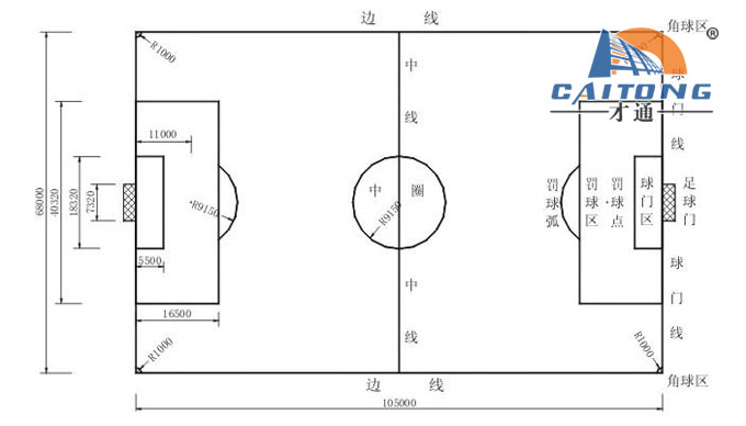 大禁區(qū)(罰球區(qū)):長40.32米、寬16.5米,在底線距離球門柱16.5米;