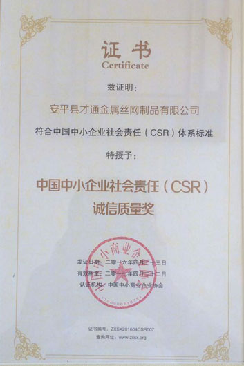 當(dāng)前位置:安平縣才通金屬絲網(wǎng)制品有限公司 > 榮譽(yù)資質(zhì)榮譽(yù)資質(zhì)